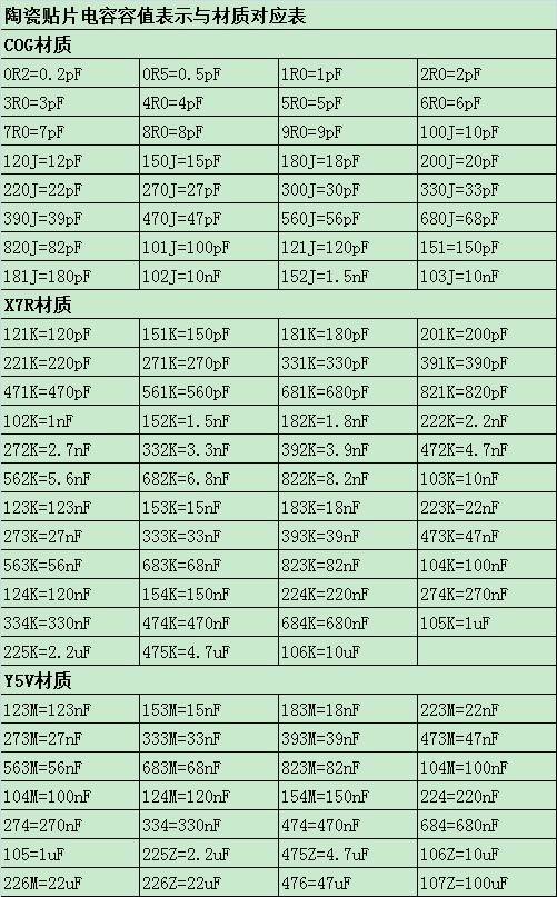 貼片電容的尺寸通常與容量有關。根據手冊提供的尺寸與容量對照表,您可以大致判斷貼片電容的容量。